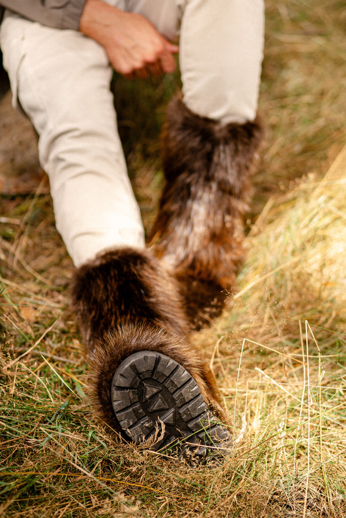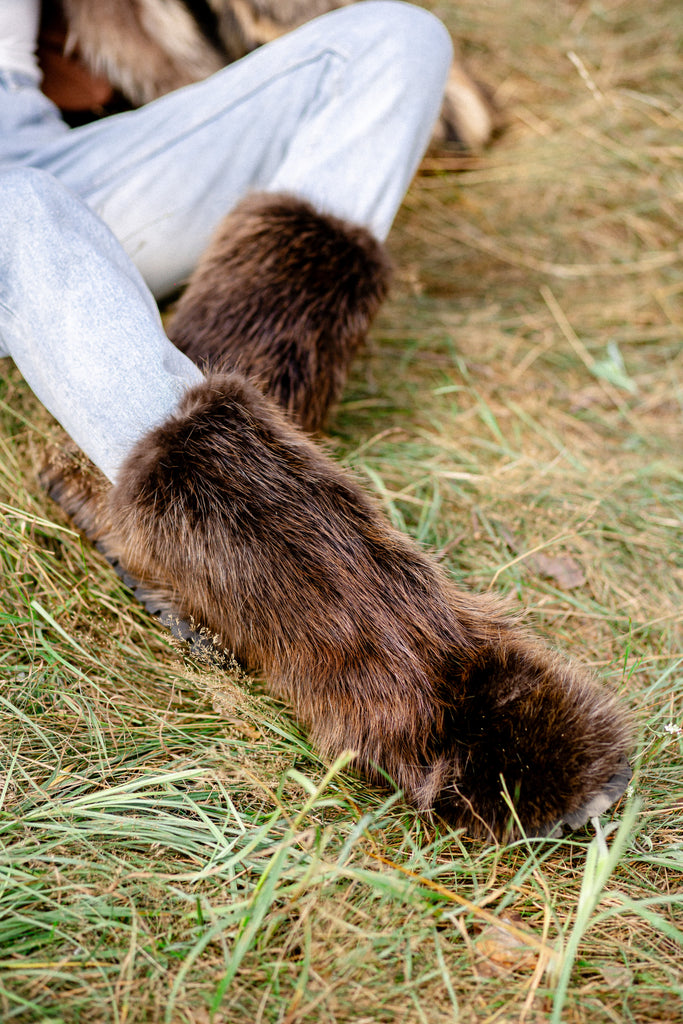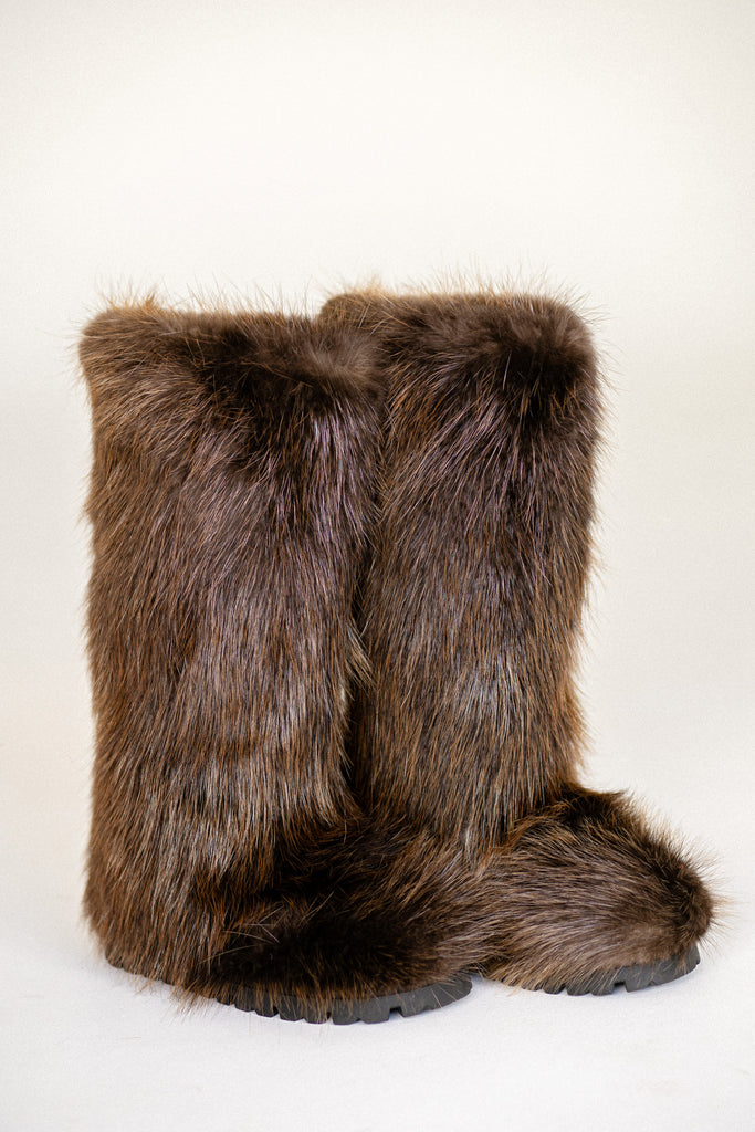 Handmade brown beaver fur boots, crafted from 100% genuine beaver fur. Designed for both men and women, these luxurious boots are the perfect blend of comfort, durability, and elegance.